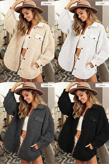 Fleece Contrast Sherpa Oversized Shacket-Charcoal -