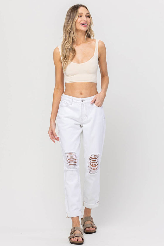 With the cuffed hem & contrast threading details, these mom jeans are definitely a statement piece you would want for your closet.